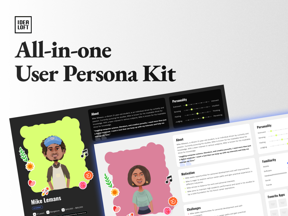 - Comprehensive toolkit for crafting User Persona Cards effortlessly.